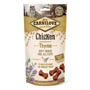 Herkullinen puolikostea herkku kaikille kissoille. Viljaton, perunaton ja sokeroimaton kissan herkku sisältää 40 % kanaa sekä hyppysellisen timjamia, joka auttaa puhdistamaan kissan virtsateitä.