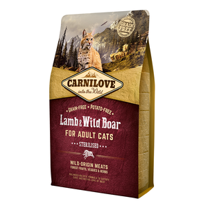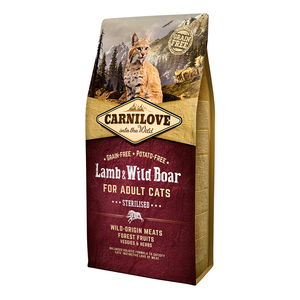 Carniloven lampaan ja villisian makuinen kuivaruoka on kehitetty aikuisille kissoille, kunnioittaen kissojen luonnollista ruokavaliota. Erityisesti steriloiduille kissoille suunniteltu lammasta ja villisikaa, luonnollisia ja kokonaisvaltaista hyvinvointia tukevia ainesosia sisältävä kuivaruoka.