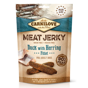 Lihaisa ja herkullinen, ankkaa, silliä ja kalkkunaa sisältävä kuivattu lihaherkku koiralle.